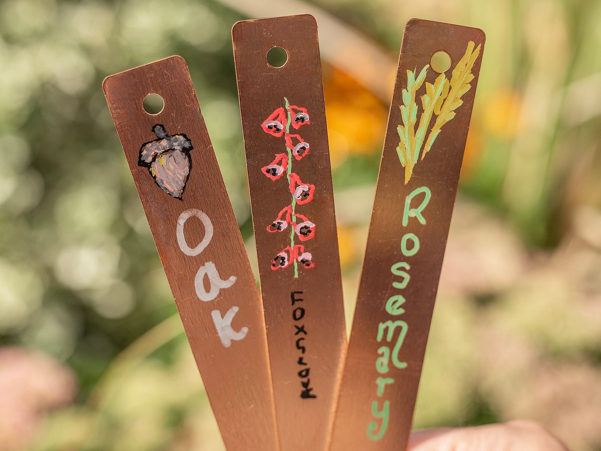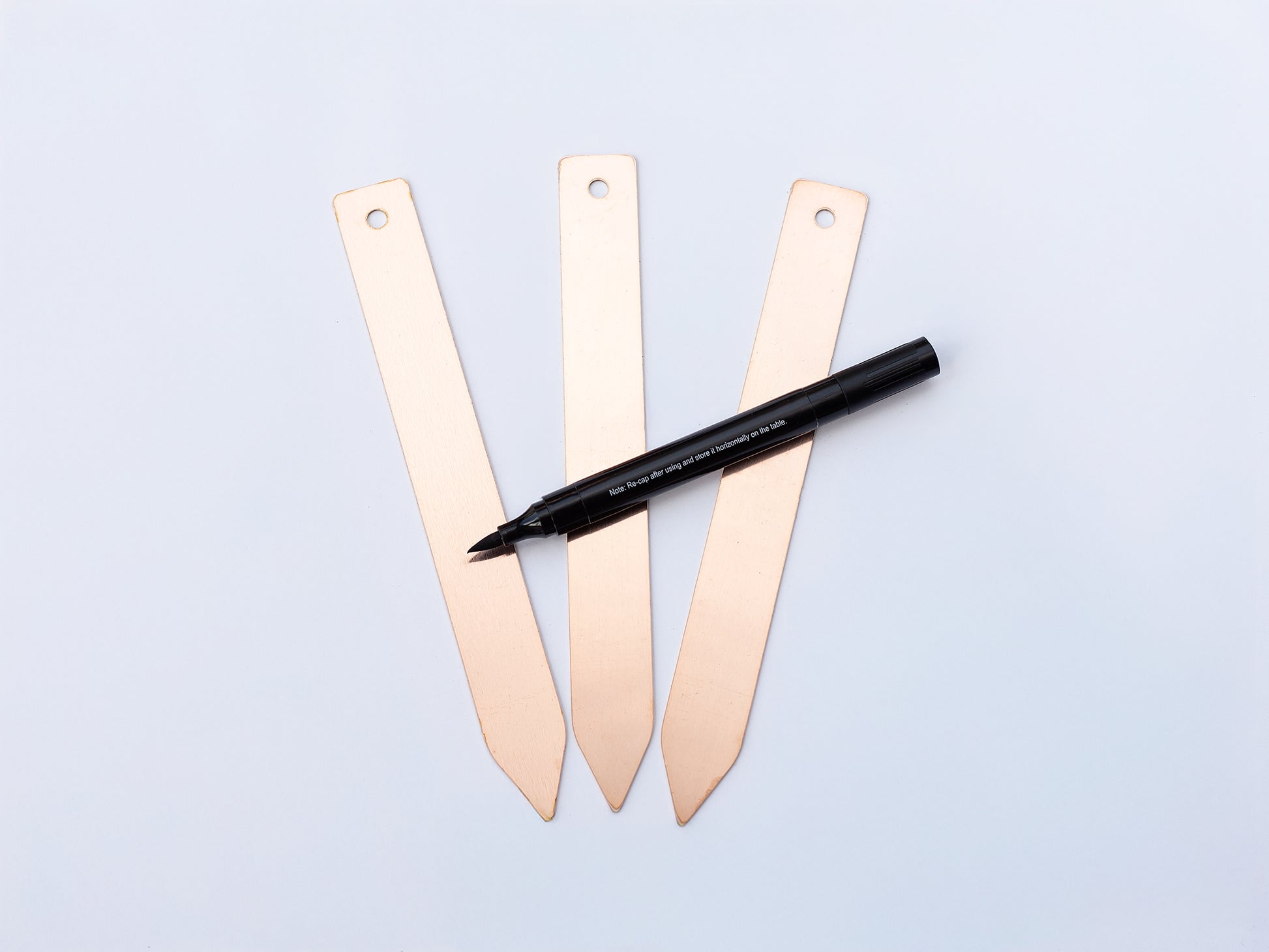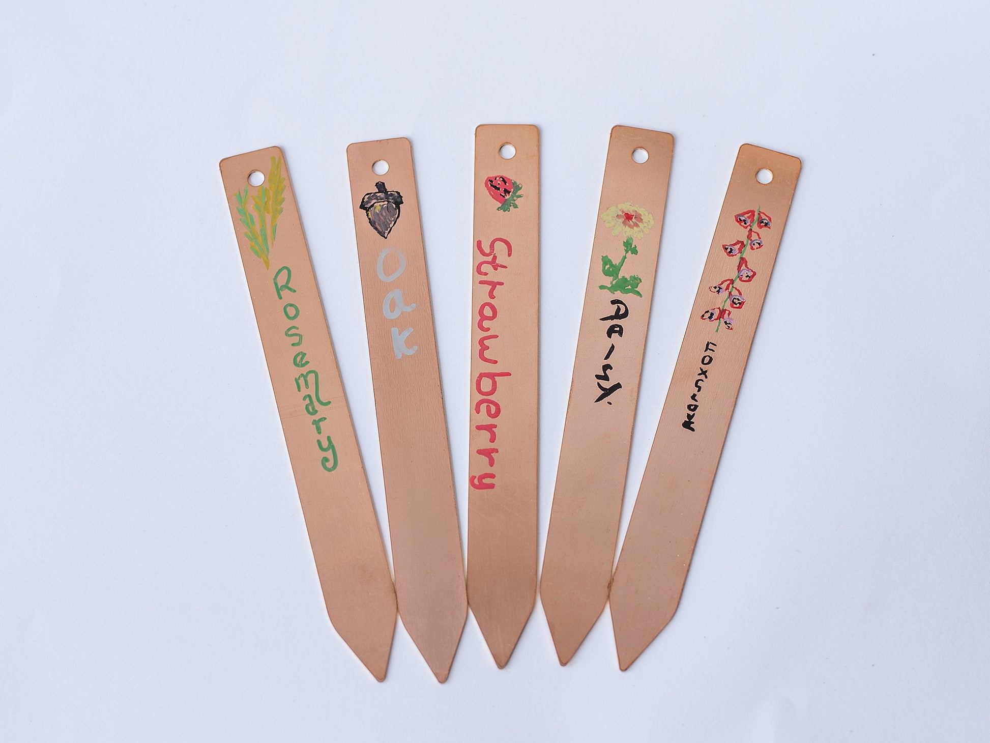 - Set of 3 pure copper plant labels with acrylic marker pen