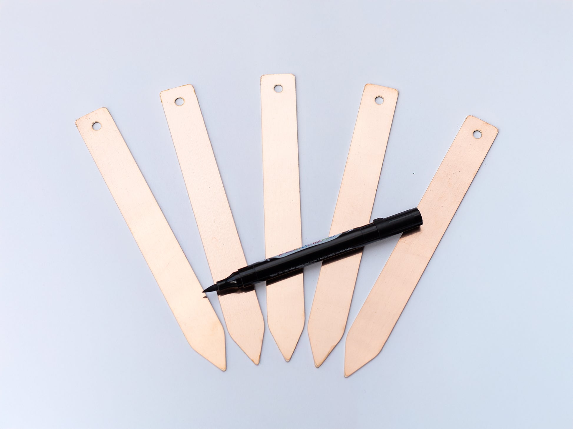 - Set of 5 pure copper plant labels with acrylic marker pen
