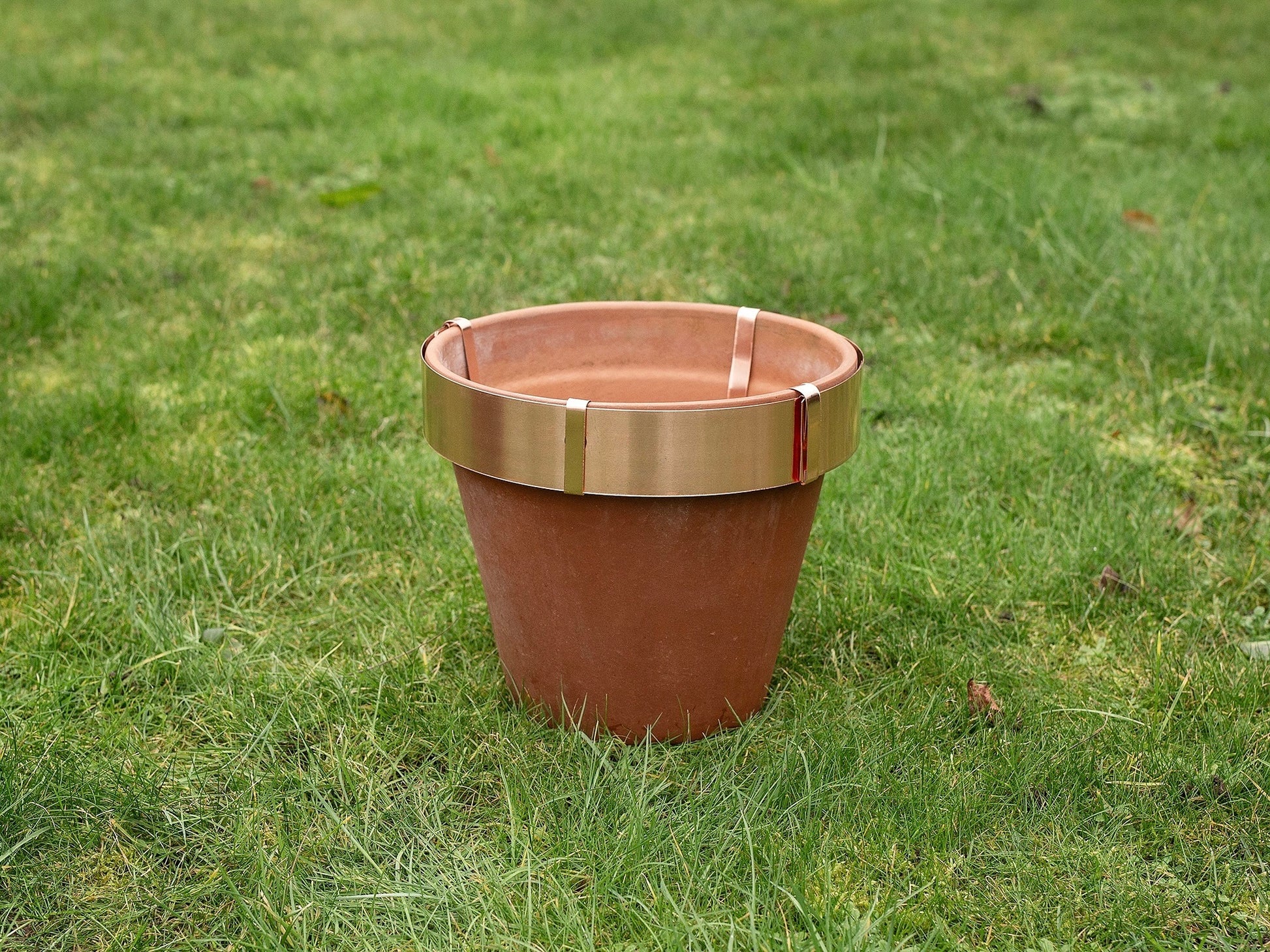 These pure copper pot rings fasten like a belt around your plant pot and are clipped over the rim.