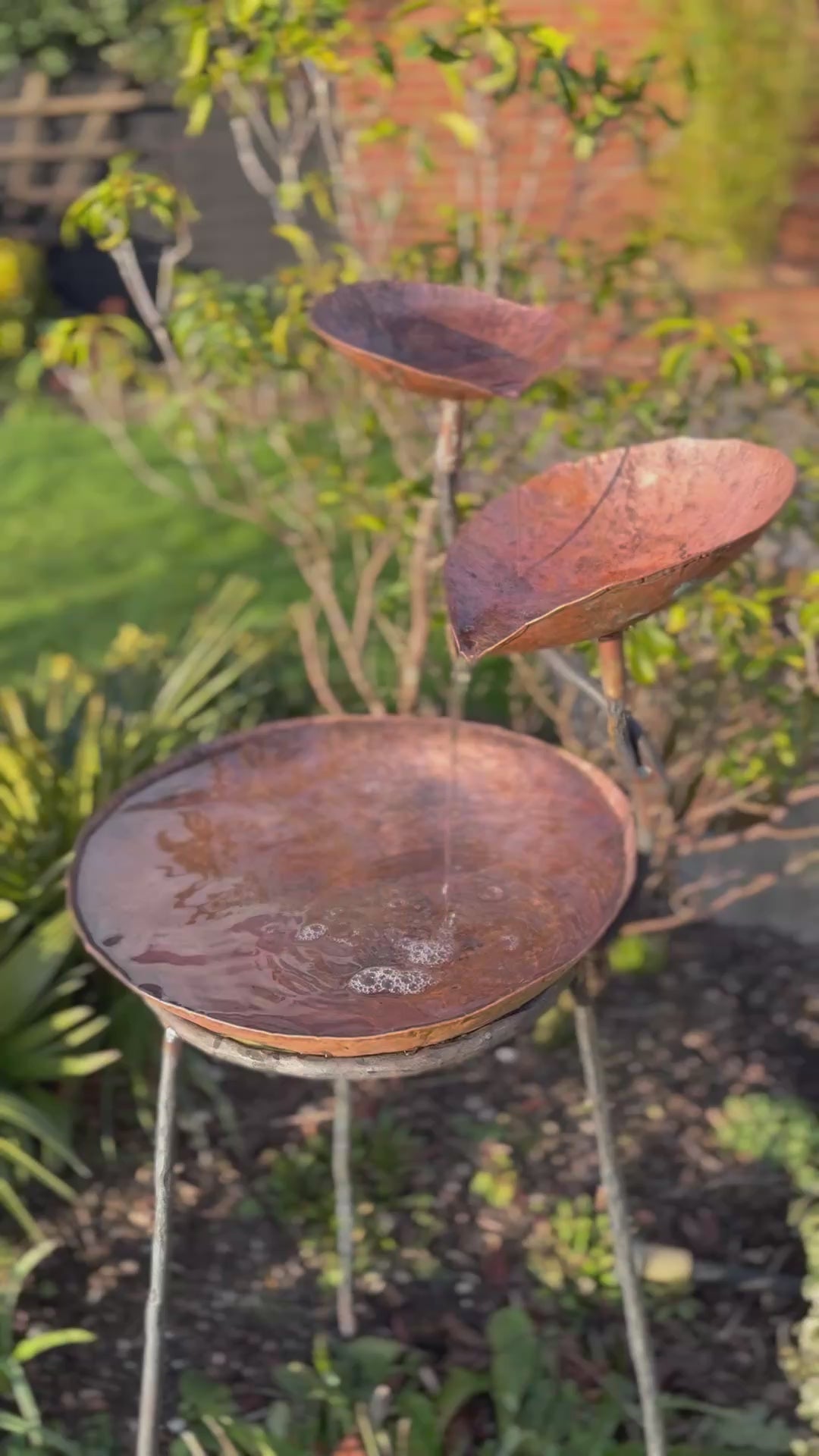 Tall Three Level Copper Water Sculpture